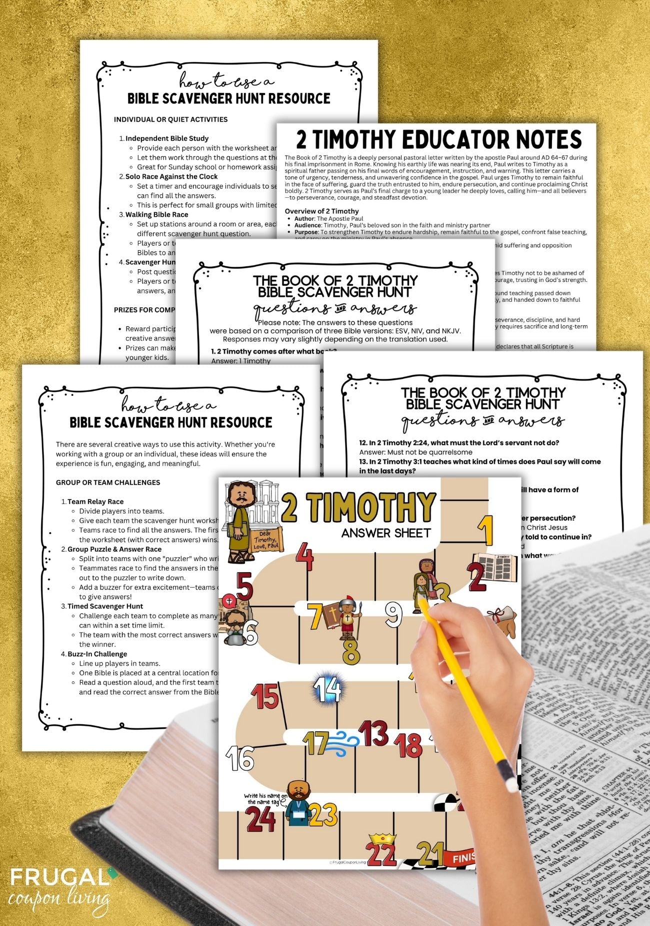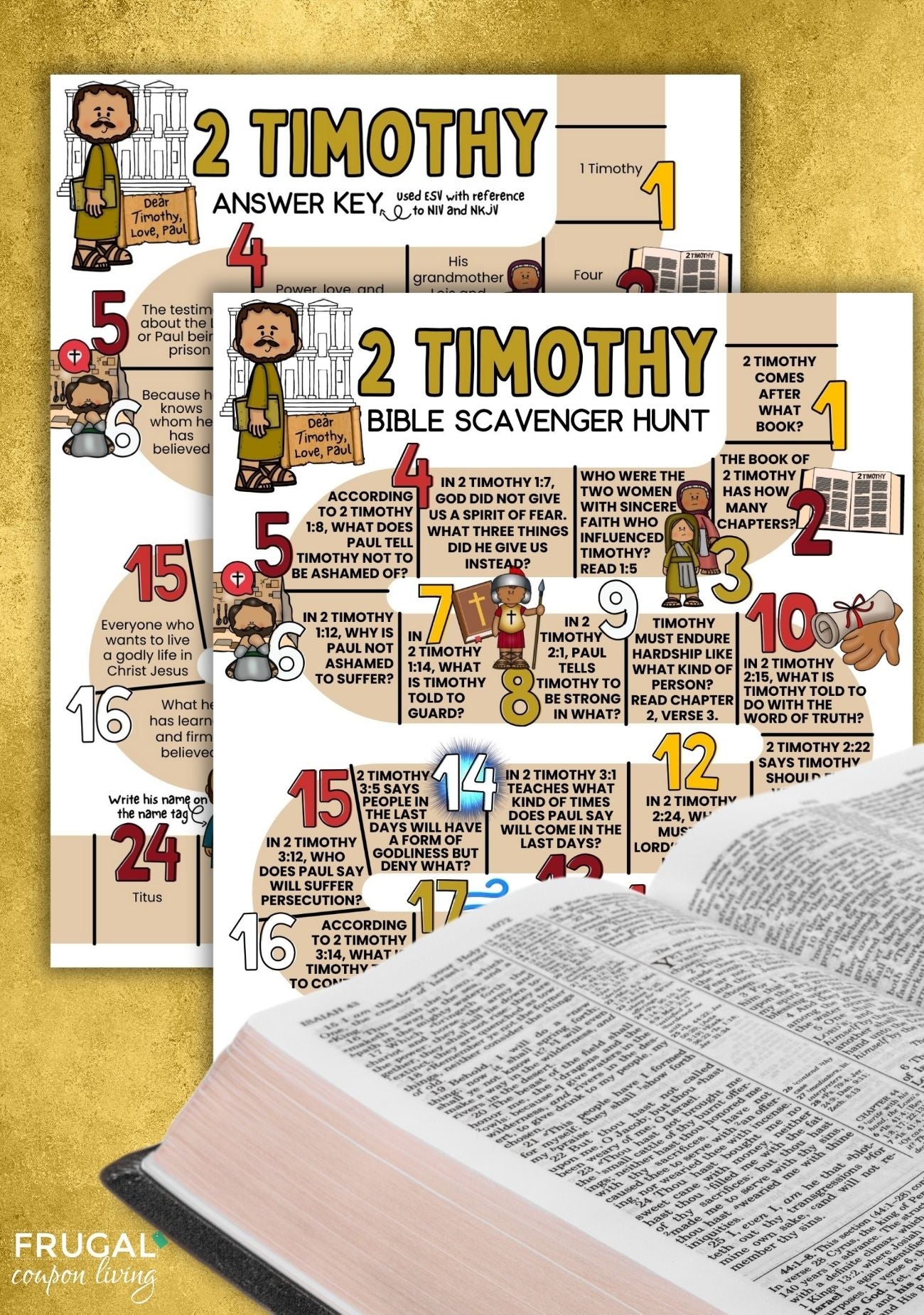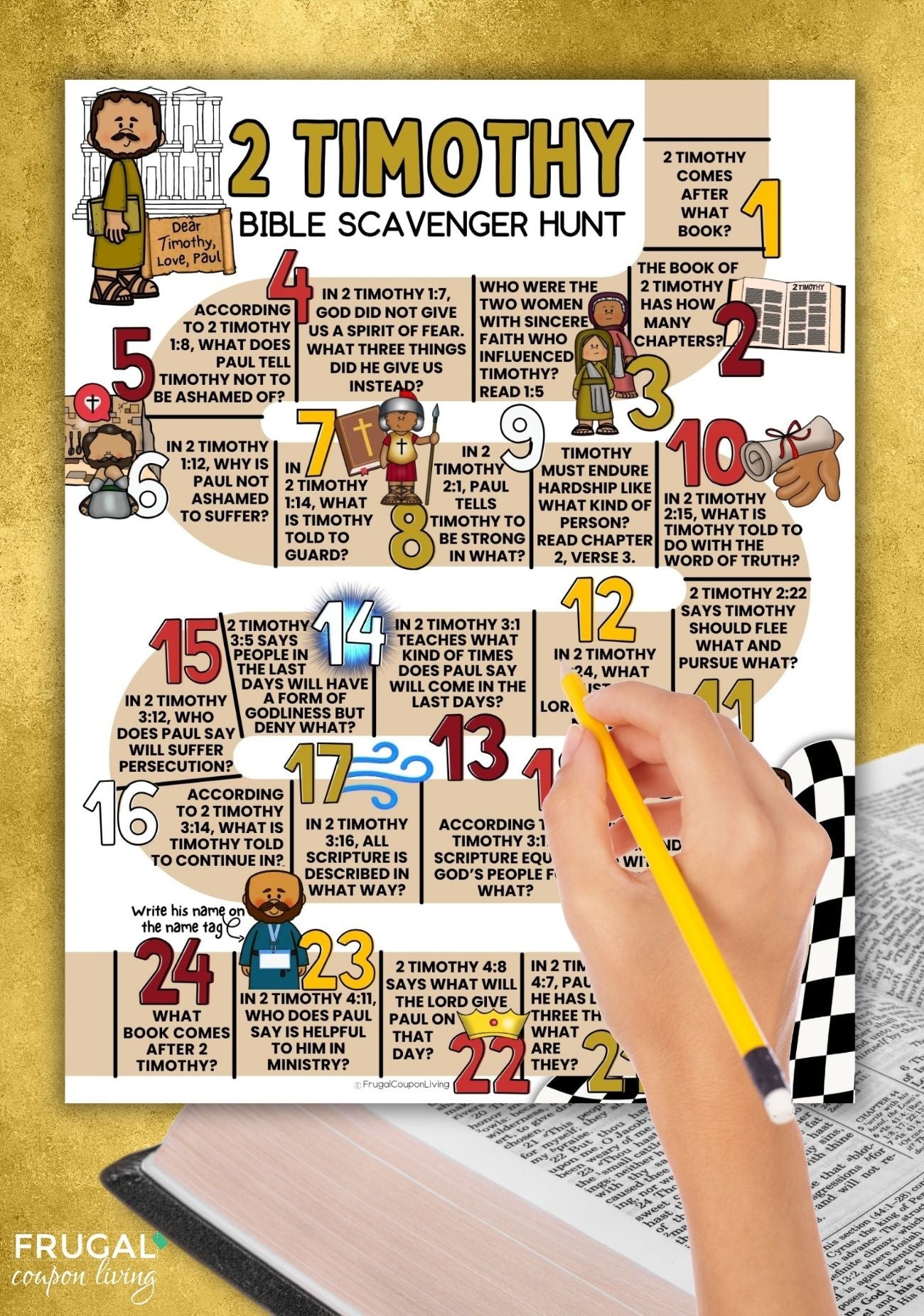 This Bible scavenger hunt focuses entirely on the Book of 2 Timothy and follows the chapters in biblical sequence.