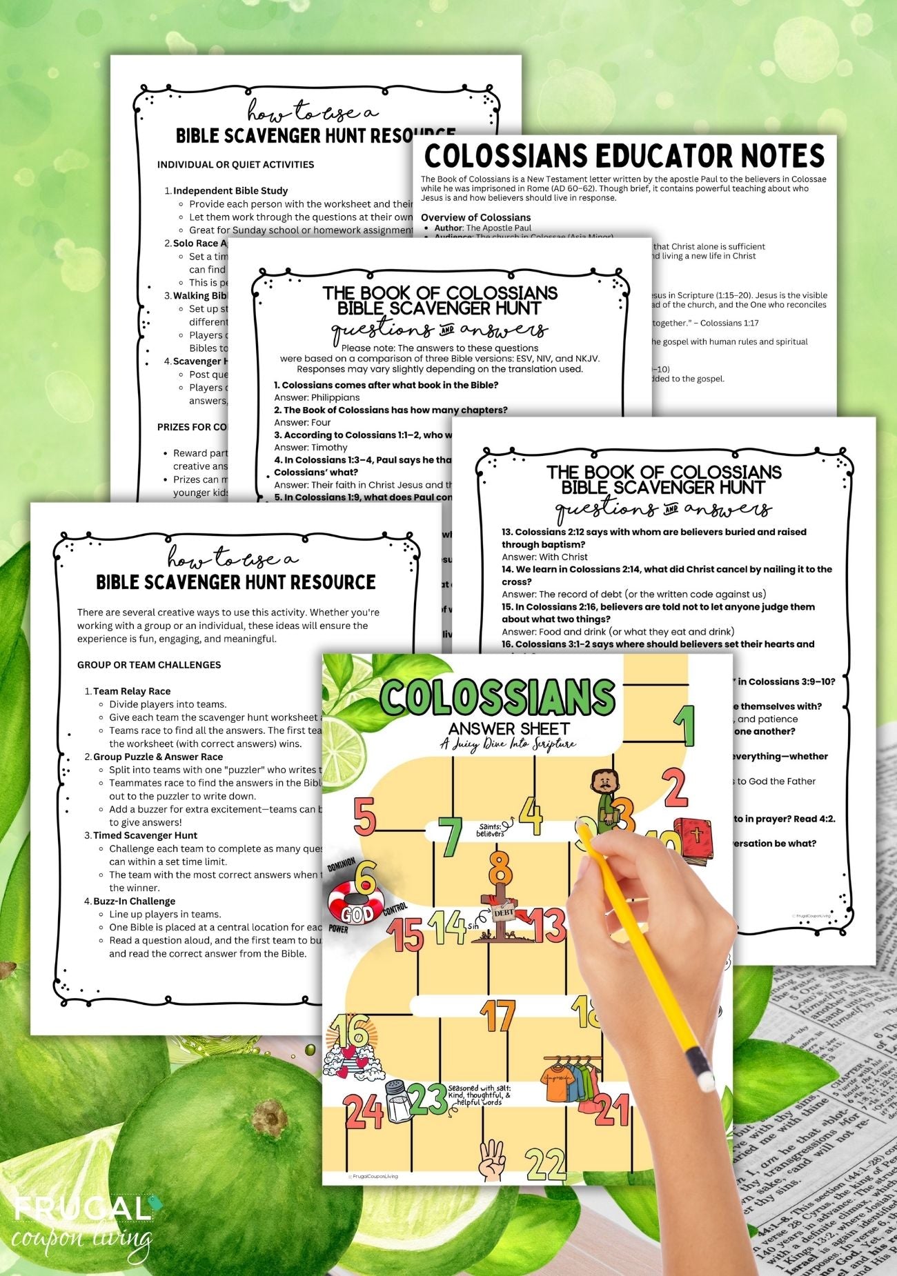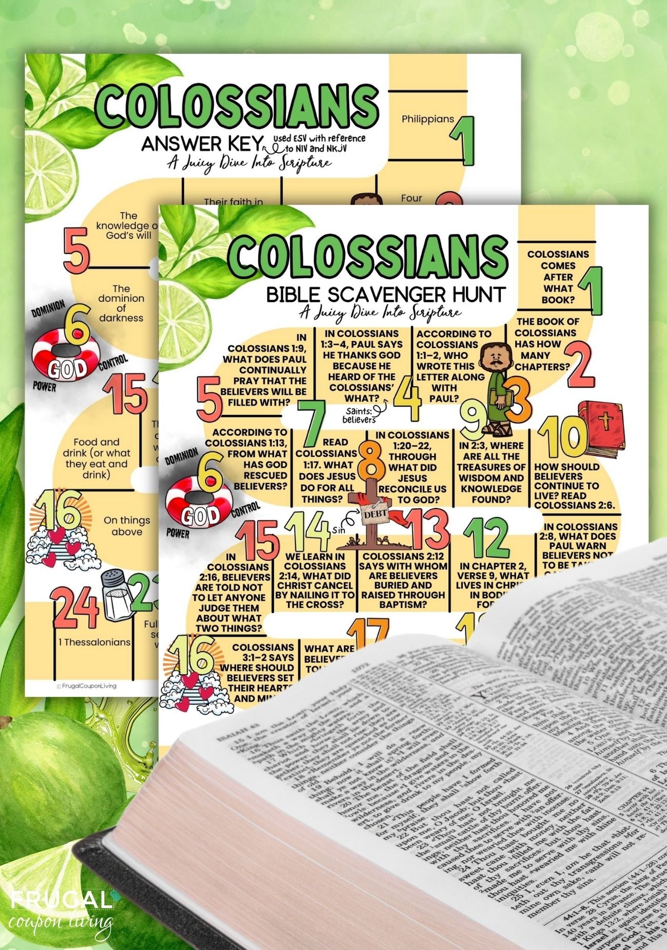 This Bible scavenger hunt focuses entirely on the Book of Colossians and follows the chapters in biblical sequence.