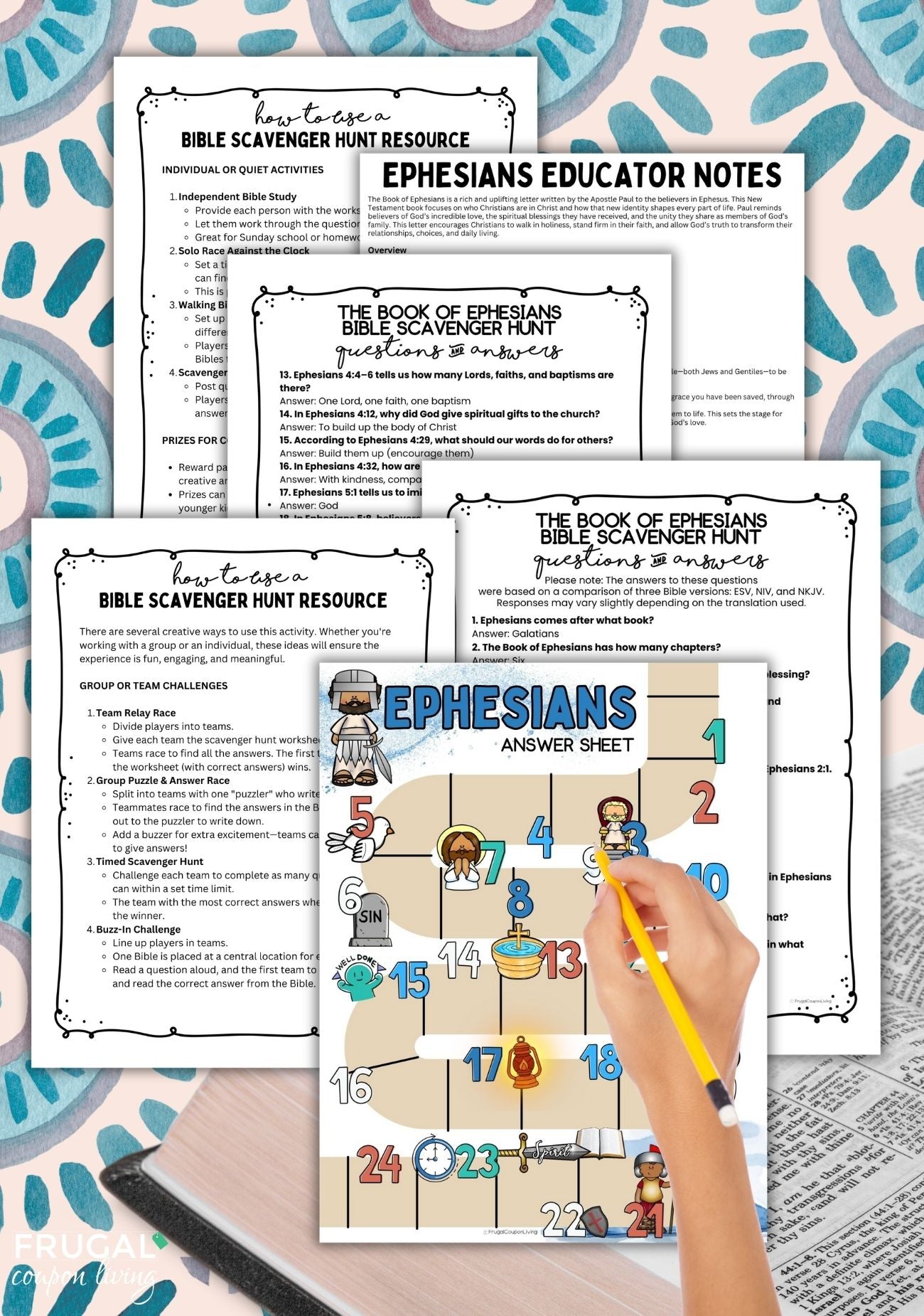 This Bible scavenger hunt focuses entirely on the Book of Ephesians and follows the chapters in biblical sequence.