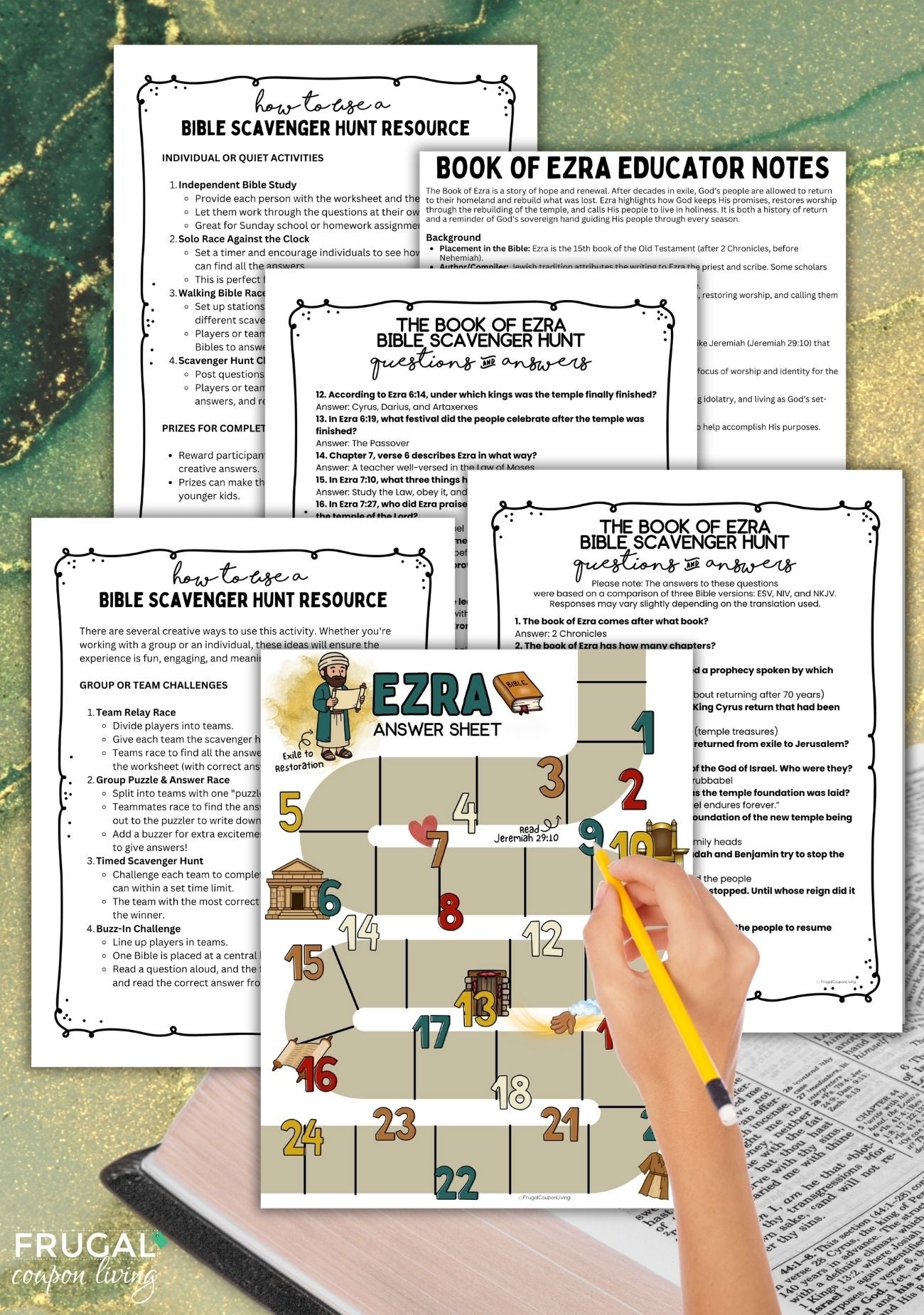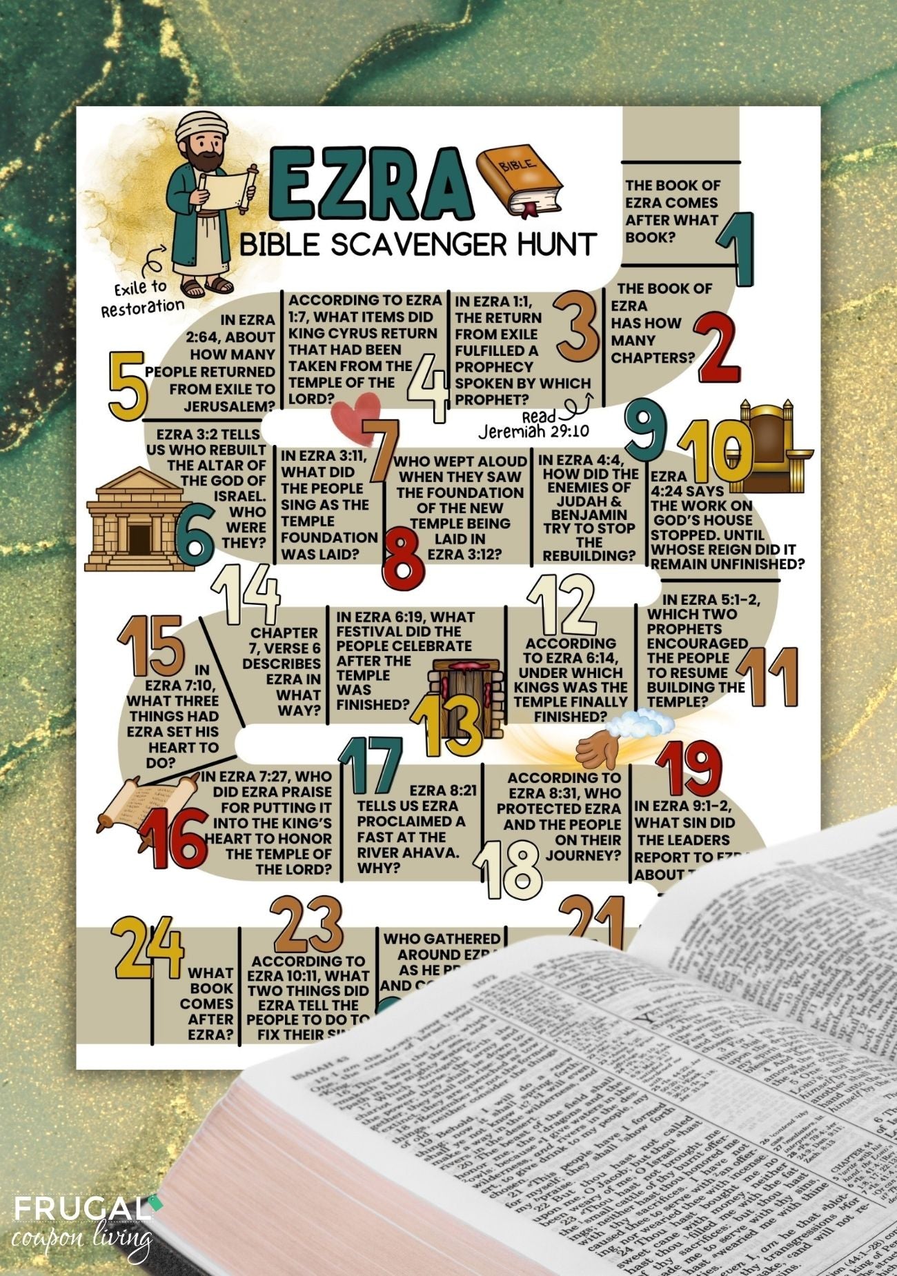 This Bible scavenger hunt focuses entirely on the Book of Ezra and follows the chapters in biblical sequence.