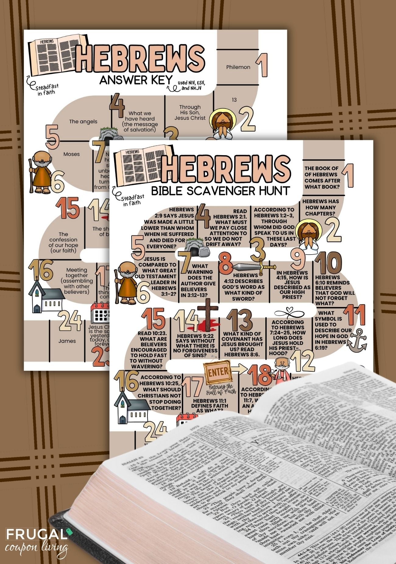 This Bible scavenger hunt focuses entirely on the Book of Hebrews and follows the verses in biblical sequence.