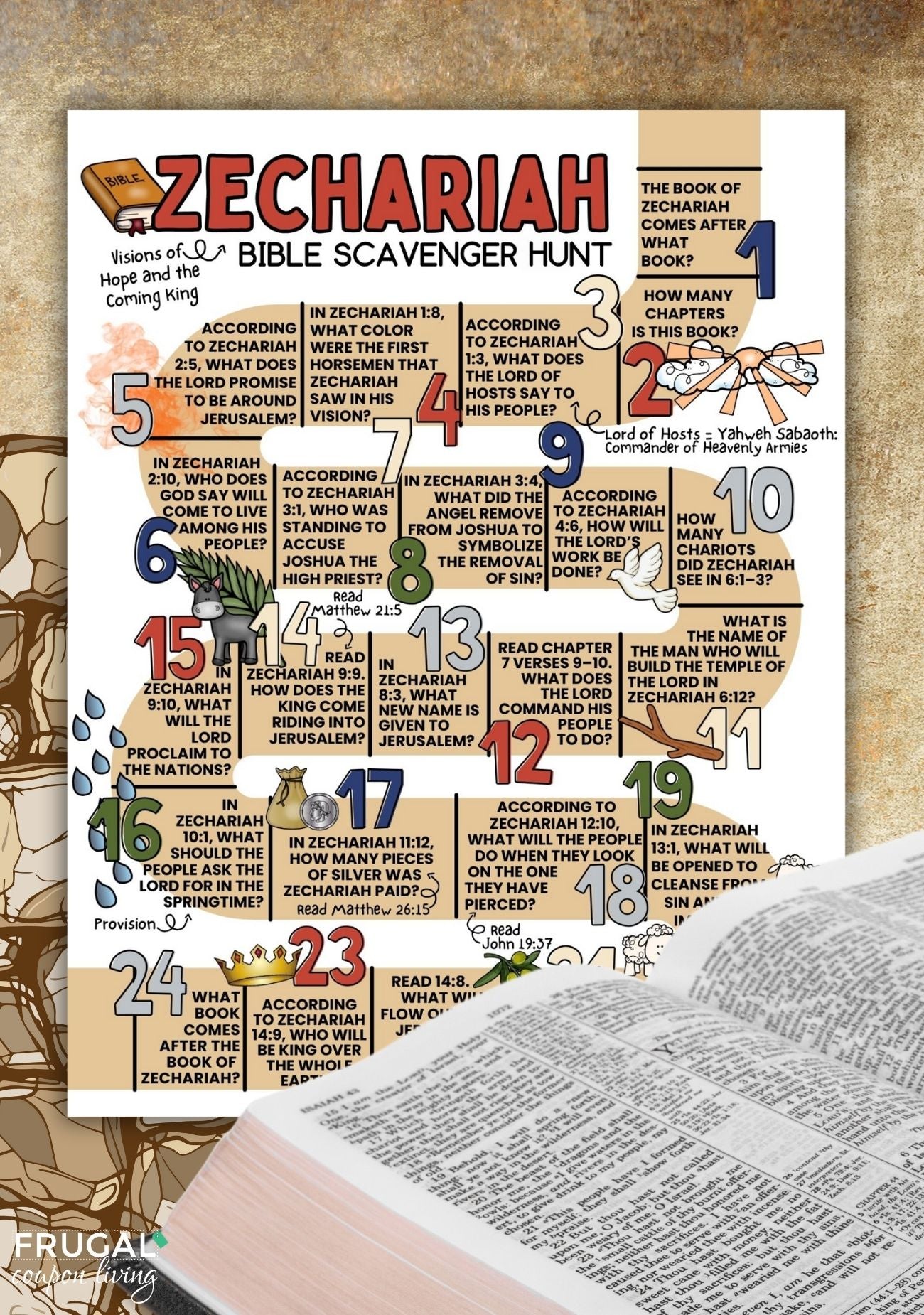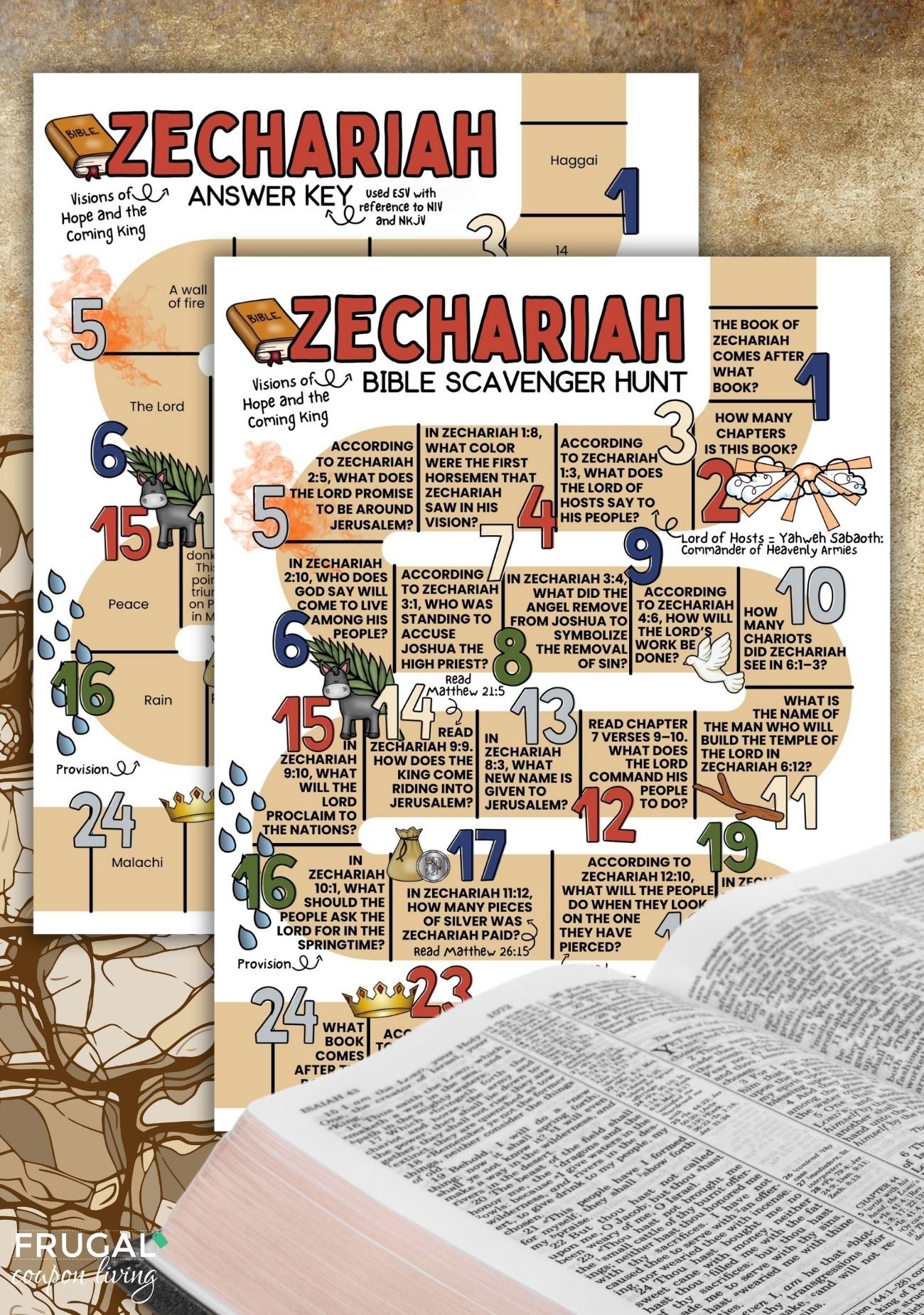 This Bible scavenger hunt focuses entirely on the Book of Zechariah and follows the chapters in biblical sequence.