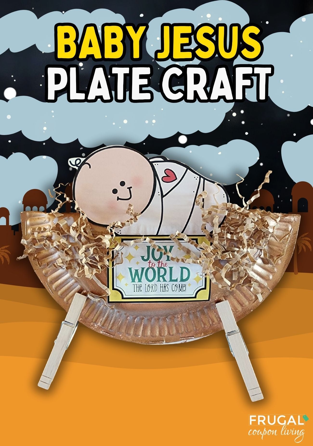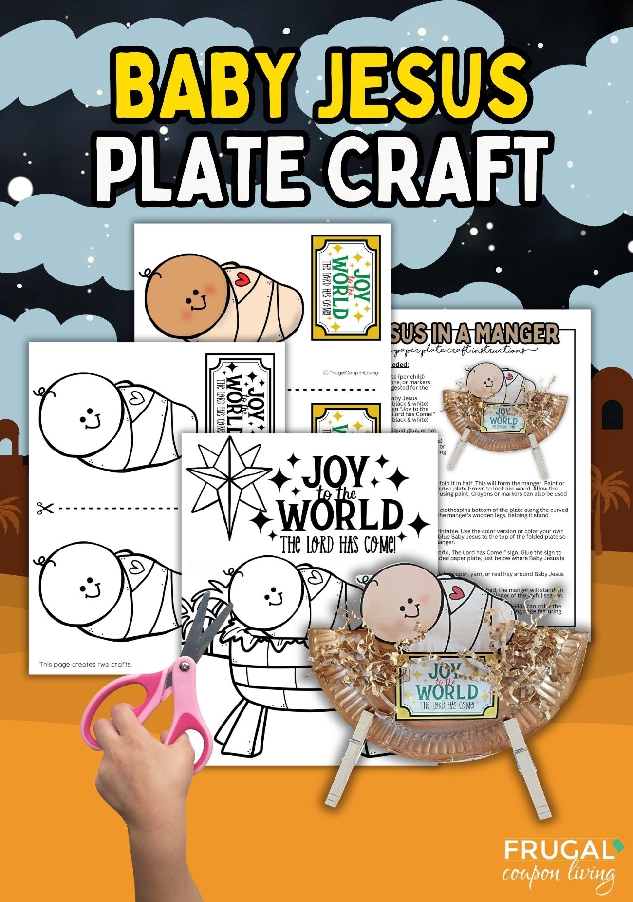 Printable Baby Jesus in a Manger Paper Plate Craft for Kids | Christmas Nativity Activity | Joy to the World Craft | Digital Download