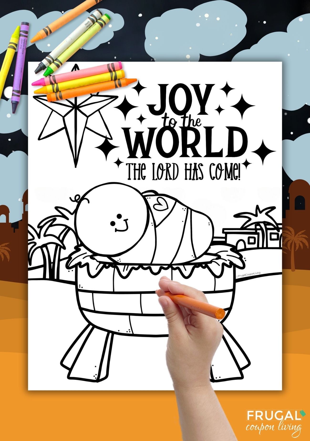 ▶︎ While the paint dries—or as an alternative—kids can color the included “Joy to the World” coloring page