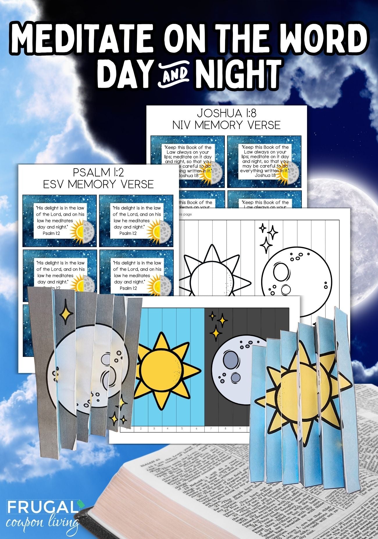 Printable Meditate on Your Word Day and Night Agamograph Craft | Psalm 1:2 & Joshua 1:8 Bible Verse Activity | Day and Night Optical Illusion Bible Craft | Digital Download