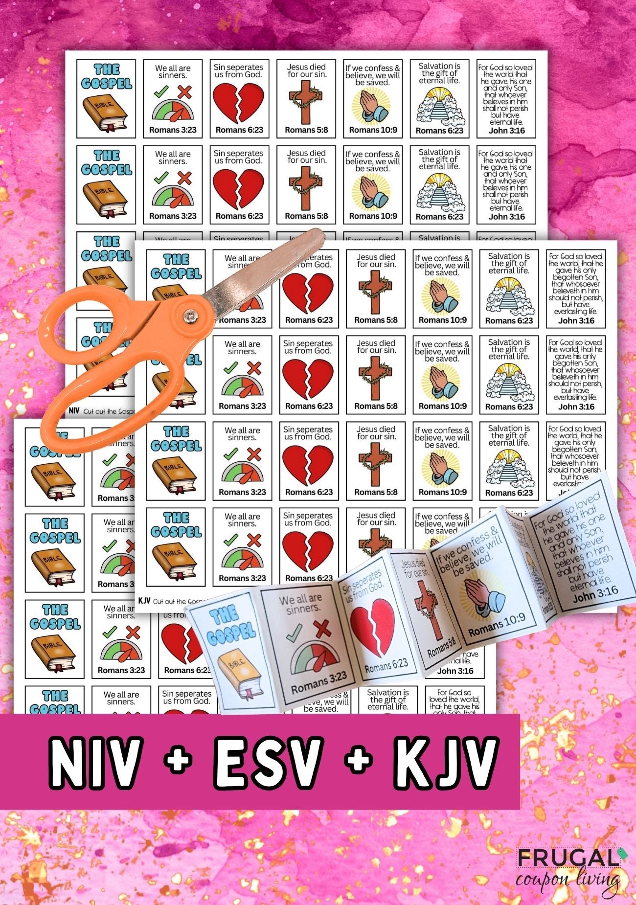 ▶︎ One 8.5 x 11 inch page with four mini gospel tracts per page