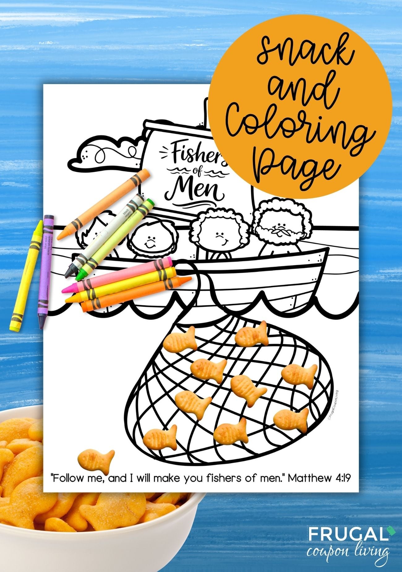 ▶︎ Printable Fishers of Men coloring page / snack mat