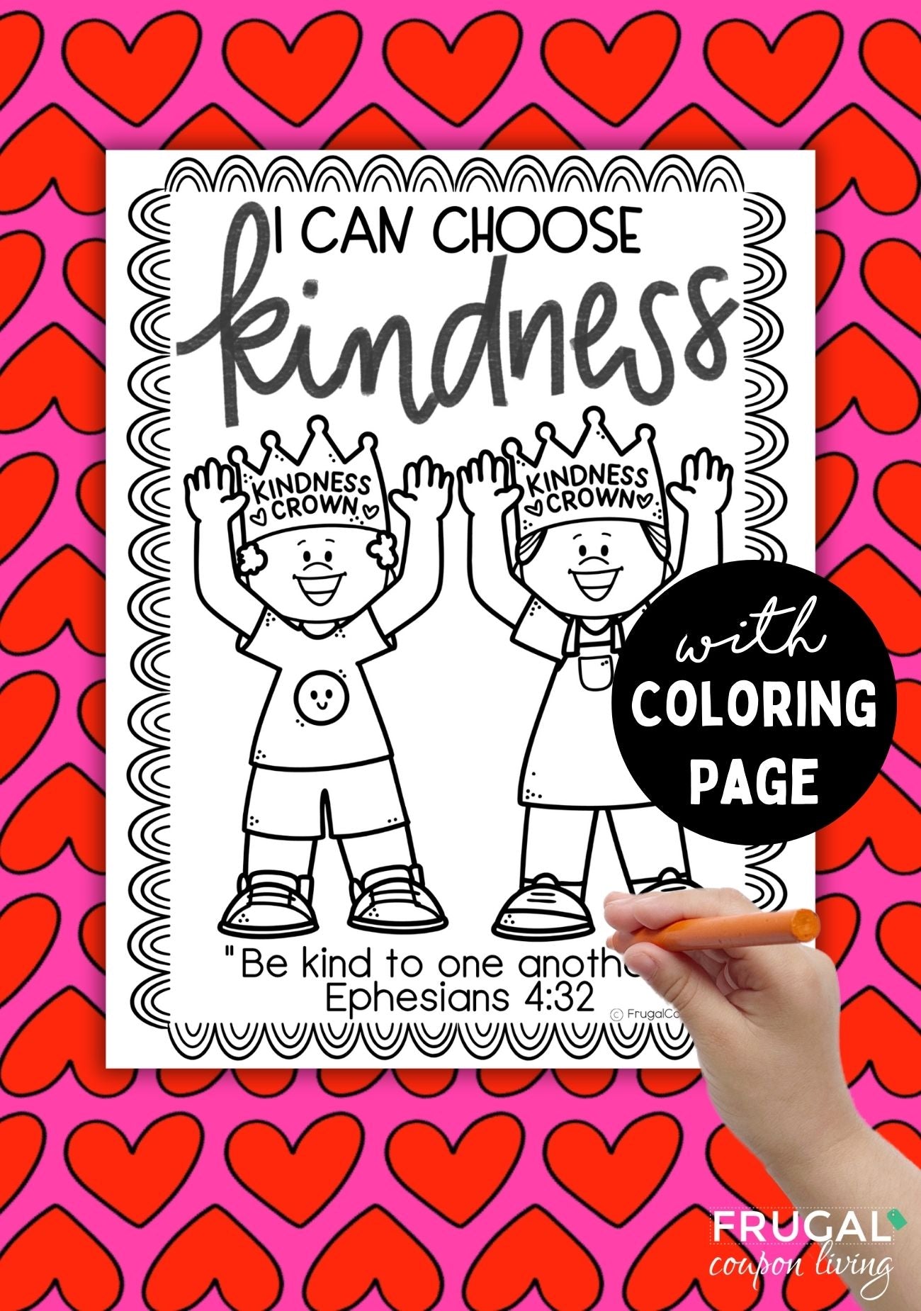 Also included is a bonus coloring page with the phrase “I can choose kindness” and the verse Ephesians 4:32 – “Be kind to one another…”, making this craft flexible for younger and older children alike.