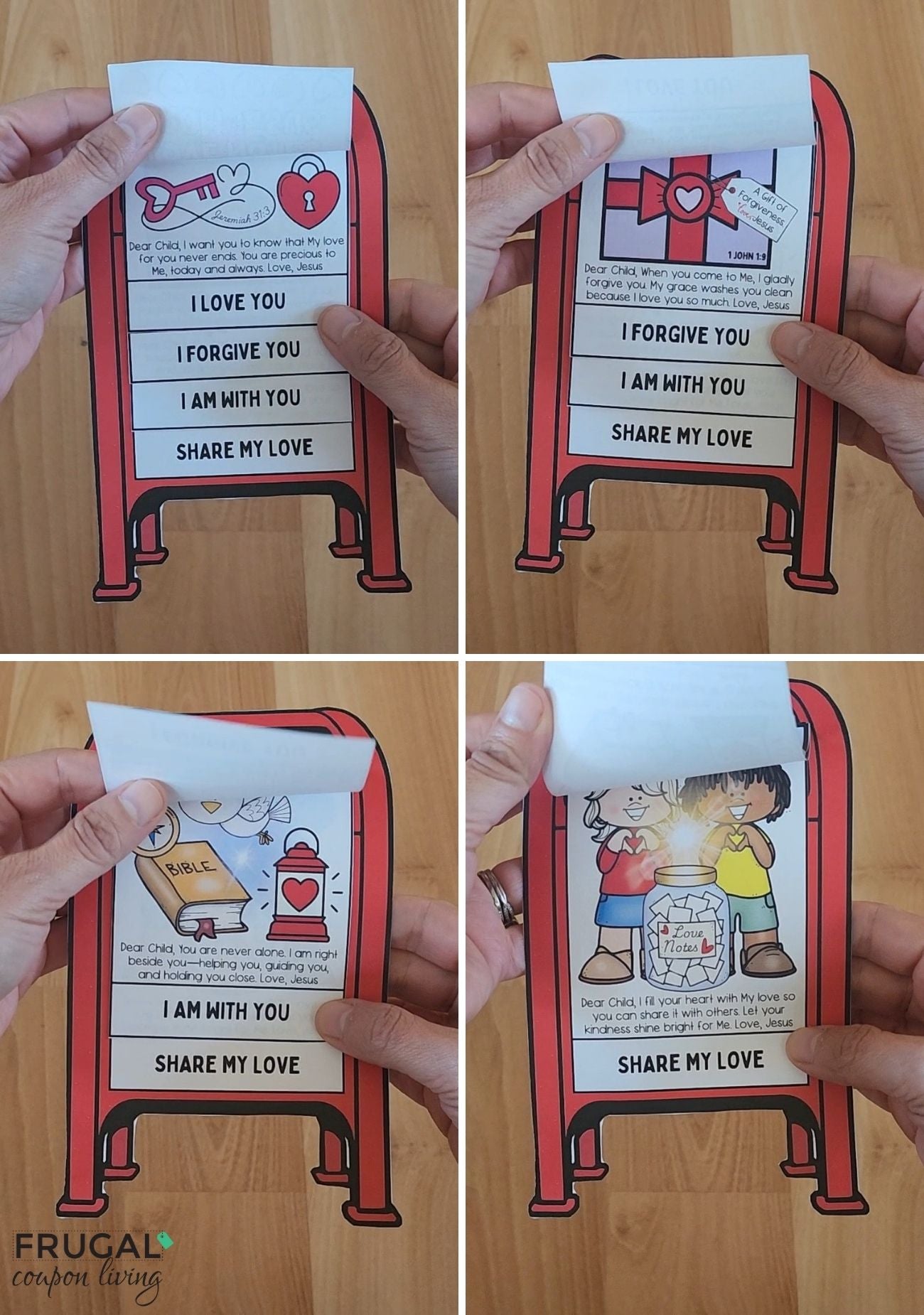 The Christian Valentine Mailbox Flipbook Craft includes:
