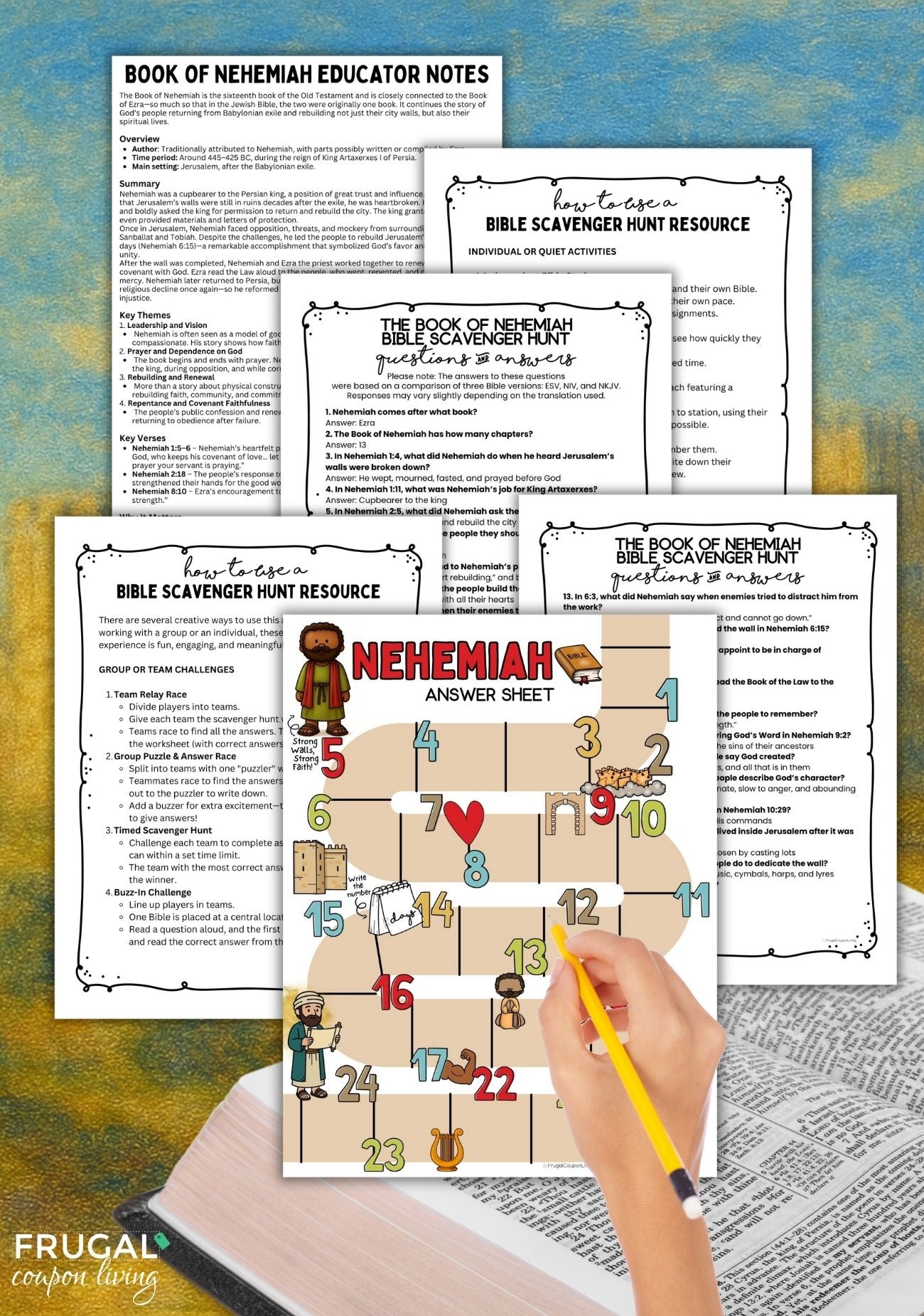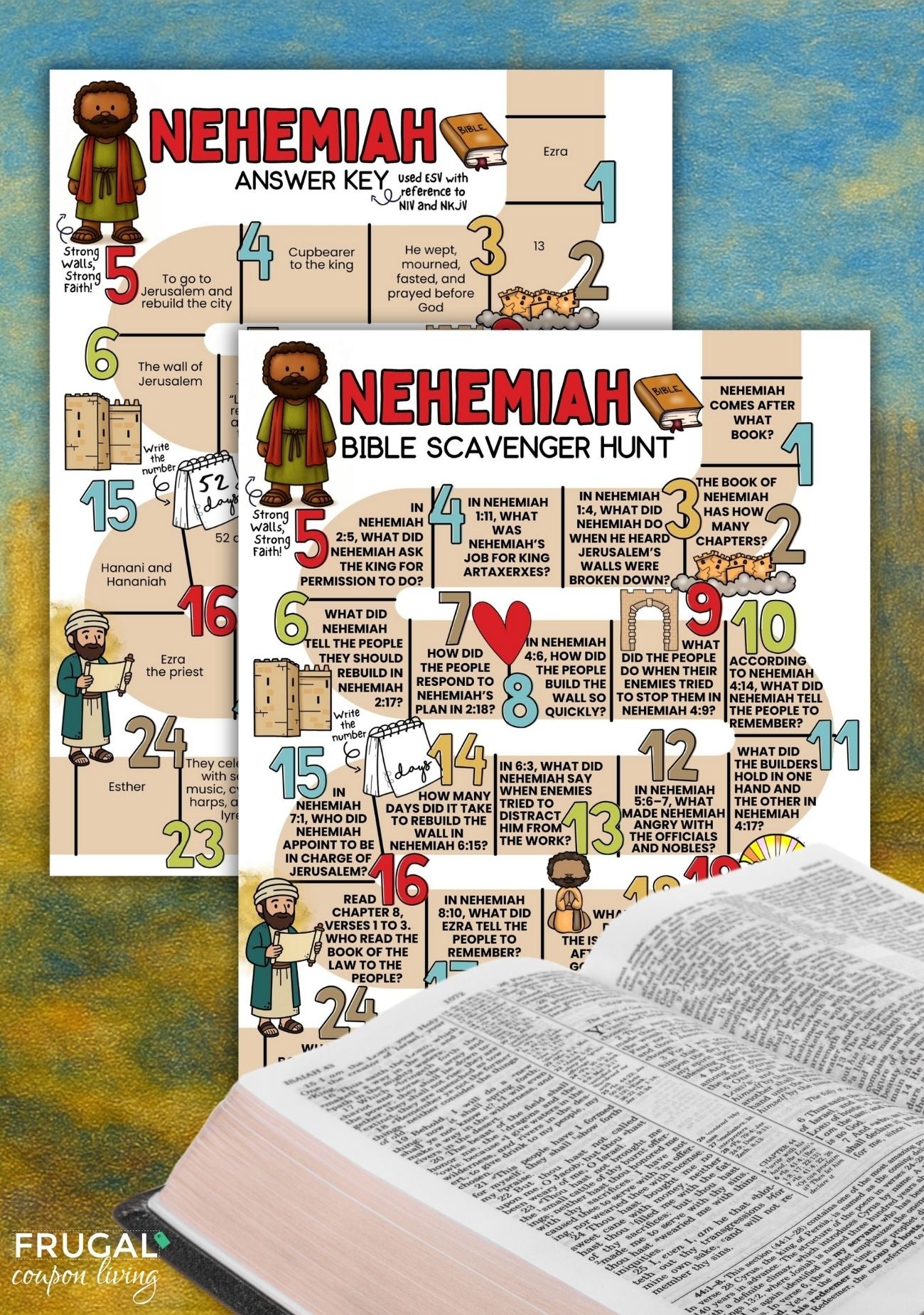 This Bible scavenger hunt focuses entirely on the Book of Nehemiah and follows the chapters in biblical sequence.