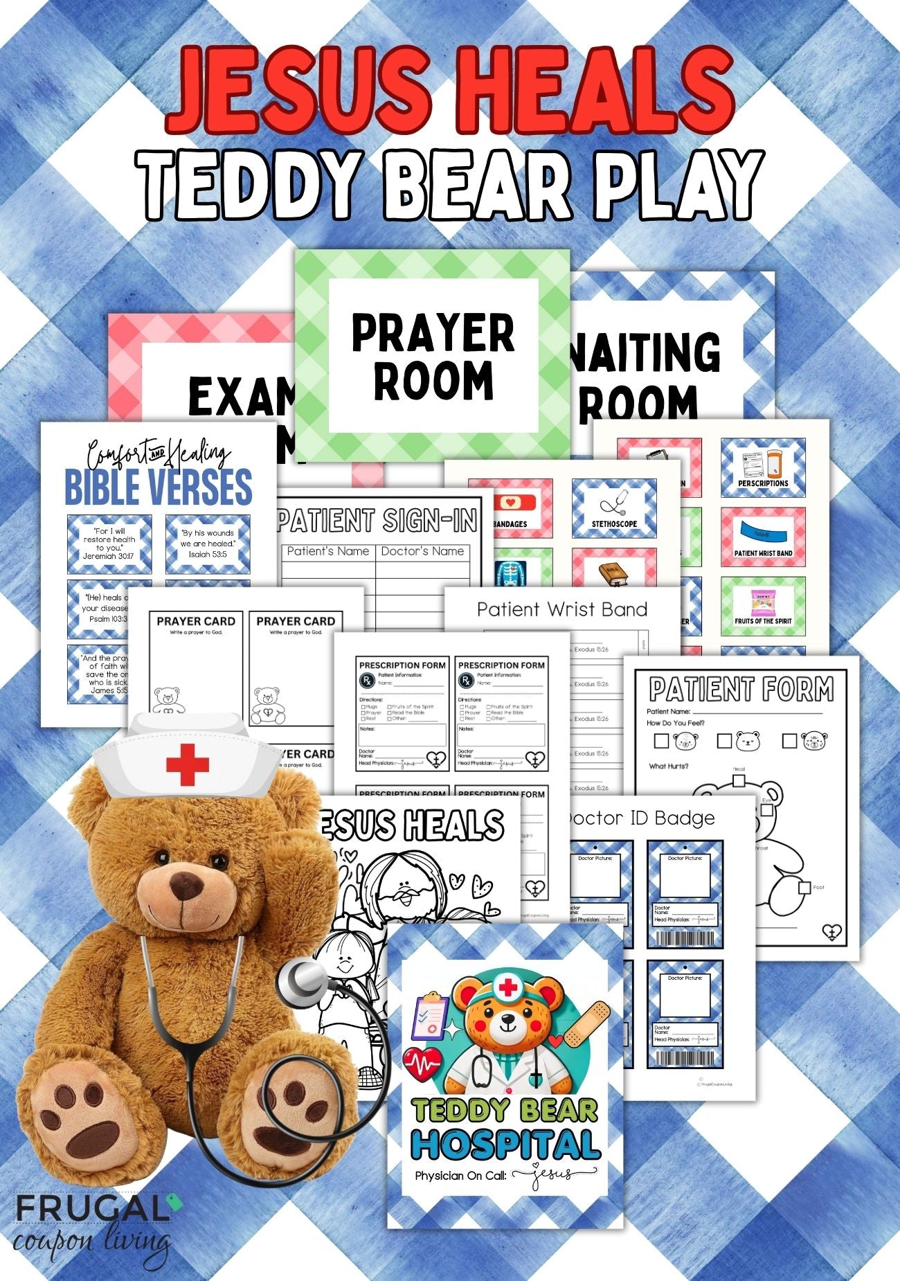 Encourage meaningful, faith-centered play with this printable Teddy Bear Hospital Pretend Play Set! Designed for Sunday school, preschool center, homeschool, Christian classrooms, or imaginative play at home, this set combines dramatic play with gentle biblical teaching: Jesus is our Healer, our hope, and the “Head Physician” we can always call on in prayer.